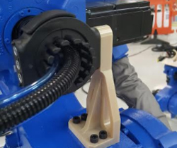Poursuivant sa stratégie d’innovation du processus de fabrication par l’impression 3D, l’usine a imprimé en 3D un bras robotique sur mesure qui déplace des composants individuels entre une étape de la ligne de production et une autre. L’emploi du matériau d’impression 3D ULTEM 9085 permet de déployer l’outil de façon satisfaisante sur la ligne de montage, et celui-ci peut résister à une utilisation prolongée, équivalant à celle des pièces métalliques traditionnelles. Le résultat est que GKN Driveline Florence imprime désormais en 3D plusieurs outils robotiques personnalisés sur l’ensemble de la ligne de production, ce qui lui permet d’économiser deux mois de travail par rapport à son processus précédent.