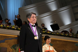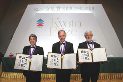 Lors d’une cérémonie solennelle, le Prix de Kyoto a été remis aux lauréats de cette année dans les catégories "Arts et Philosophie", "Technologie avancée" et "Sciences fondamentales". C’est toujours le 10 novembre que la Fondation Inamori décerne cette distinction hautement dotée - et cette année est déjà la 33ème fois. Au Kyoto International Conference Center situé dans la vieille cité impériale japonaise, les trois lauréats se sont vus remettre leur prix en présence de la princesse Takamado, membre de la famille impériale, et de plus d’un millier d’invités internationaux du monde des affaires, de la culture et de la politique. La récompense comprend un diplôme, la médaille du Prix de Kyoto et une dotation de 50 millions de yens (environ 400 000 euros) par catégorie.