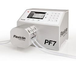 La nouvelle PF7 de Flexicon est une unité péristaltique spécifiquement conçue pour le remplissage de fluides sensibles de forte valeur en salles blanches. Sa conception ergonomique, qui est dédiée à une installation sur une paillasse ou pour une intégration à un isolateur ou une unité LAF, présente des surfaces exemptes de recoins et donc faciles à nettoyer. Grâce à ses performances améliorées, la nouvelle unité PF7 est capable de remplir des volumes de 0,2 ml à plus de 5000 ml, tout en assurant une précision de remplissage de +/- 0,5 %. Cette précision constante et inédite permet d’éliminer les coûts élevés dus au sur-remplissage et favorise un excellent retour sur investissement. De plus, l’accélération et la vitesse de remplissage réglable de l’unité PF7 éliminent les risques de projection et de formation de mousse, tandis que l’écoulement est éliminé grâce à une fonction d’aspiration. Le changement du tube d’acheminement du liquide prend moins d’une minute. Ce dernier est hermétique, éliminant ainsi le risque de contamination croisée. L’unité PF7 est compatible avec les tubes à usage unique aspticSU, ce qui la rend idéale pour un remplissage aseptique.