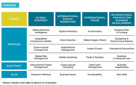 Le programme combinant théorie et pratique, forme des futurs managers qui seront capables d’évoluer dans différents environnement professionnels où la composante internationale est essentielle à la croissance des entreprises.