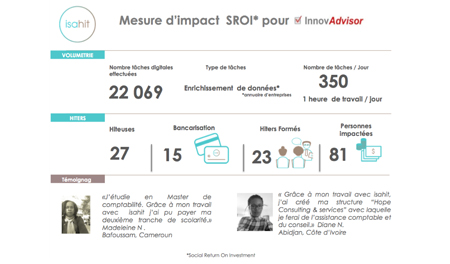 Isahit a pu mesurer l’impact de la mission InnovAdvisor qui a permis de former aux codes du numérique et du travail une vingtaine de personnes et d’en bancariser une quinzaine.