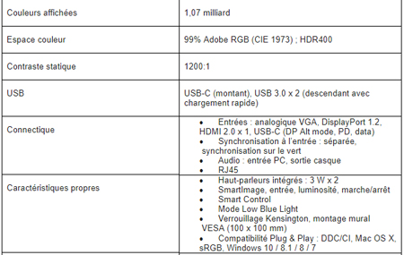 Et de fait, le 328P6AUBREB ne manque pas d’atouts : outre sa dalle IPS et sa résolution QHD 2560 x 1440 parfaitement adaptées à l’affichage de visuels haute définition, il utilise la technologie HDR, gage d’une luminosité et d’un niveau de contraste très supérieurs à la moyenne. Cet écran 10-bits est capable d’afficher 1,074 milliards de couleurs et s’appuie sur un traitement interne optimisé pour afficher des couleurs naturelles et des dégradés subtils. Sa couverture à 99% de l’espace couleur Adobe RGB (CIE 1973) le positionne tout naturellement comme la solution privilégiée pour tous les acteurs de l’univers graphique.