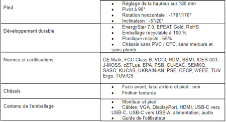 Au-delà de ses caractéristiques premières, le 328P6AUBREB bénéficie également de nombreuses fonctionnalités propres à la gamme Philips moniteurs, dont le pied ergonomique SmartErgoBase permettant de régler la hauteur de l’écran, de l’incliner, d’en modifier l’orientation horizontale ou de le pivoter à 90° pour travailler indifféremment en mode portrait ou paysage. On notera aussi la technologie Flicker-free qui régule la luminosité et réduit le scintillement pour un meilleur confort de visualisation, et deux haut-parleurs intégrés pour les applications multimédia. Sans oublier qu’avec une utilisation à 65% de plastique recyclé, cet écran constitue une excellente option pour les utilisateurs soucieux de l’environnement.
