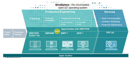 L’outil de simulation Simosim permet de réaliser des accès à Internet et d’exécuter des fonctions de test dans des conditions similaires aux conditions réelles avec un automate. Outre les fonctions de débogage (état du programme, points d’arrêt et traces) et les fonctionnalités de serveur Web et de serveur OPC UA, il est également possible de simuler des axes. Ces fonctions de simulation permettent d’accélérer le lancement de la production en réduisant les opérations fastidieuses de recherche d’erreurs et d’adaptation du programme au moment de la mise en service de la machine. Simosim est ainsi un élément important dans la chaîne de digitalisation des processus, de la configuration aux services basés sur le cloud.