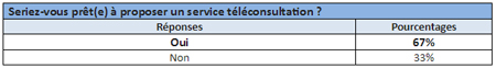 Première interrogation majeure : "les médecins sont-ils prêts à proposer un service de téléconsultation à leurs patients ?" A cette question, plus de 67% des médecins interrogés répondent par l’affirmative. Ils mettent ainsi en avant une plus forte réactivité, un aiguillage rapide vers une visite physique obligatoire ou un autre médecin spécialisé, et également la possibilité de palier à la pénurie de praticiens dans certaines régions.