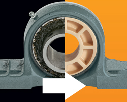 Les paliers à semelle et paliers appliques sont souvent soumis à des sollicitations extrêmes, par la saleté et la poussière notamment. Celles-ci sont présentes dans des équipements de chantier ou encore dans des installations de convoyage de verre ou de produits en terre. Les exploitants de telles machines et installations doivent alors d’assurer d’un bon graissage. Les nouvelles calottes sphériques en polymère hautes performances iglidur J offrent maintenant au client une solution sans graisse et sans entretien mise en place en quelques instants seulement.