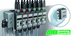L’ASC agit pour limiter la consommation d’énergie à deux niveaux : L’air n’est consommé que pour créer le vide et permettre la préhension de la pièce et son déplacement. Une fois que le niveau de vide réglé est atteint, un clapet se referme, permettant de maintenir la pièce sans aucune dépense d’énergie. Si le niveau de vide baisse, une reprise d’air est générée jusqu’à revenir à la valeur initiale.