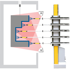 Dynamic-Contour Detection. La géométrie de l’objet saisie exactement par le contour du scanner laser sera automatiquement transmise par la commande 3D- Software, les axes des pistolets sont positionnés en fonction et les paramètres de revêtement pour un revêtement de peinture-poudre automatisé.