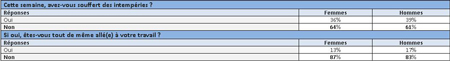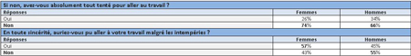 Cependant, les Français avouent qu’ils n’ont pas fait beaucoup d’efforts pour trouver une solution afin de se rendre sur leur lieu de travail. Ainsi, 74% des femmes et 66% des hommes déclarent qu’ils n’ont pas tout tenté pour aller travailler. Qui plus est, 57% des femmes interrogées disent qu’elles auraient clairement pu aller au travail malgré les intempéries tout comme 45% des hommes.