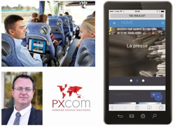 Développée par les ingénieurs d’une toute jeune PME française basée près de Bordeaux, cette technologie augmente considérablement l’expérience voyageur et offre aux annonceurs un outil digital très innovant pour promouvoir leurs produits/services. « Un voyage en bus dure en moyenne 1h15 », note Cyril JEAN, CEO de PXCOM. « Les passagers ont donc du temps et de l’attention durant leur trajet. Un contexte propice pour les artisans, commerçants et prestataires de services locaux pour promouvoir leur activité et offrir des coupons de réduction téléchargeables depuis un smartphone. »