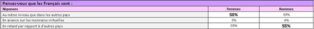 Pour 58% des femmes interrogées, la France est au même niveau d’utilisation des cryptomonnaies que les autres pays. De leur côté, 55% des hommes considèrent à l’inverse que le pays a énormément de retard sur ces nouvelles pratiques.