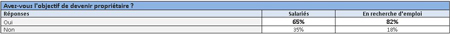 Si à la question "Avez-vous l’objectif de devenir propriétaire ?", la grande majorité des Français répond par l’affirmative, les choses sont plus contrastées en fonction du statut professionnel. En effet, les salariés sont 65% à déclarer vouloir accéder à la propriété quand les demandeurs d’emploi sont plus de 82%.