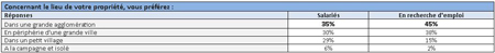 Pour ce qui est des régions dont rêvent les Français pour leur lieu idéal, deux choix se distinguent clairement : d’un côté, les salariés sont plus de 18% à préférer la région Auvergne-Rhône-Alpes et de l’autre, 24% des demandeurs d’emploi rêvent de l’Île-de-France.
