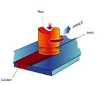 Le soudage par friction-malaxage (ou Friction StirWelding) est une technologie innovante de soudage d’éléments solides, basée sur le principe physique du soudage par friction en rotation. Concrètement : une broche en rotation spécialement profilée (appelée « pion ») exerce un frottement à l’extrémité du joint de soudure. La matière passe alors à l’état « pâteux », entre l’état liquide et l’état solide. Le pion progresse le long du joint de soudure et brasse les matières des deux pièces à assembler. Souder avant d’atteindre la température de fusion des matériaux permet d’assembler des alliages difficilement soudables avec les techniques de soudage classiques, comme des alliages d’aluminium, de magnésium ou de cuivre.