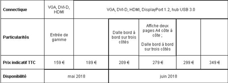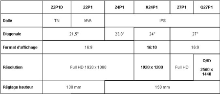 Sous le signe de la polyvalence, la série P1 se décline en six modèles de 21,5”, à 27”, dont un 24” en format 16:10. Tous présentent une ergonomie complète avec réglage de la hauteur. Technologie de dalle – TN, IPS ou MVA – et connectique varient suivant les modèles. Dans un souci de protection de l’environnement et de développement durable, l’ensemble de la série P1 est conforme aux critères Energy Star 7, EPEAT Gold et TCO Displays 7, aujourd’hui incontournables pour les entreprises. Elle est garantie trois ans par échange sur site comme la totalité de l’offre AOC.