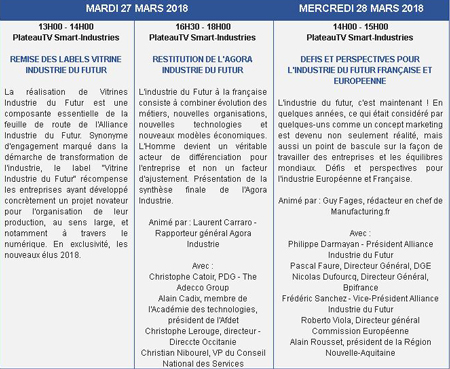 MERCREDI 28 MARS 2018, 16H00 - 18H00, PlateauTV Smart-Industries.