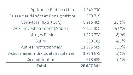 Soit environ 11,1% du capital, à un prix de 35€ par action, dans le cadre d’un placement par construction accélérée d’un livre d’ordres (« Accelerated Book Building ») auprès de plusieurs investisseurs institutionnels.