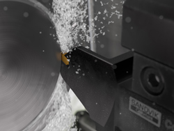 « Dans l’usinage des gorges frontales, les copeaux ont tendance à se coincer à l’intérieur des gorges, ce qui nuit à l’efficacité de la production, et c’est pour cela que la stabilité est importante », explique Jenny Claus, responsable produits pour le tronçonnage et les gorges chez Sandvik Coromant. « CoroCut QF est d’une conception robuste avec une lame très rigide et l’arrosage de précision favorise considérablement la réussite et la répétabilité des gorges frontales. L’inclinaison de la plaquette améliore la stabilité et la conception de la fente garantit une force de serrage correcte. Des rails disposés sur le dessus, sur le dessous et à l’arrière de la plaquette réduisent les mouvements de celle-ci et améliorent la sécurité des process. »