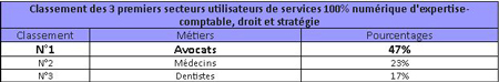 L’étude menée par wity met en avant le fait que les avocats arrivent en tête (47%) du classement des professionnels libéraux utilisant des services 100% numérique d’expertise-comptable. Ils arrivent devant les médecins (23%) et les dentistes (17%) dans le top 3 des professions libérales utilisant l’expertise-comptable en ligne. Parmi les quatre services plébiscités par les avocats se trouvent le suivi de comptabilité, la déclaration contrôlée 2035, la déclaration TVA et la déclaration de revenus. En ce qui concerne les usages, les avocats recherchent principalement l’envoi en ligne des documents comptables, le suivi des comptes bancaires, l’édition des devis et factures et enfin le suivi des indicateurs comptables.