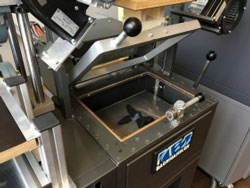 Pour le produit fini, Bachmann utilise un processus de thermoformage au cours duquel un film de plastique est d’abord chauffé afin de le ramollir. Sous vide, le film est ensuite étiré sur le master, qui possède de petits trous l’aspirant à l’intérieur. Il adhère ainsi au modèle et en prend la forme. Enfin, le film doit être refroidi jusqu’à ce qu’il devienne solide, stade à partir duquel il peut alors être décollé.