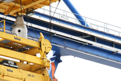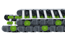 La société igus compte parmi ces fournisseurs depuis 20 ans. L’entreprise produit des "plastiques en mouvement", des polymères hautes performances dédiés aux applications en mouvement. igus fabrique notamment des systèmes de chaînes porte-câbles en polymères qui représentent aujourd’hui l’état de l’art dans les grues du monde entier et prennent en charge le guidage sûr des câbles d’alimentation en énergie, en données et en agents. Theo Diehl est Responsable Projets pour le Secteur des grues depuis 20 ans chez igus et, à ce titre, il se souvient encore très bien des premiers projets avec la société Künz : "L’entreprise a vu dès le début les avantages de nos chaînes porte-câbles à roulettes et en a équipé de premières installations." Les roulettes intégrées aux maillons des chaînes permettent de réduire considérablement le coefficient de frottement sur les applications glissantes lorsque le brin supérieur de la chaîne vient se poser sur le brin inférieur. Ce système permet au client d’économiser jusqu’à 57% de la force motrice requise pour déplacer le système de chaînes porte-câbles. Le premier projet commun a été l’Eurogate Container Terminal d’Hambourg. Sont depuis venus s’y ajouter de nombreux autres projets, notamment à Kiel, à Duisburg ou dans l’Ohio. Ce dernier projet a d’ailleurs été un projet particulier pour les deux entreprises, sept grues à conteneurs y ayant été construites jusqu’à présent. Le très grand dynamisme de ces grues se solde par une sollicitation très élevée des composants utilisés.
