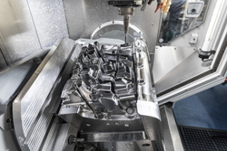 Lors de l’achat du nouveau centre d’usinage à 5 axes C 52 U, la société HETEC est allée encore plus loin en commandant pour la première fois le pack de base HIMS (Hermle Information Monitoring Software). Ce dernier permet d’afficher l’état du cycle de vie et offre également la possibilité d’envoyer les résultats par e-mail au besoin. Cela s’accorde parfaitement avec la stratégie de fabrication et de surveillance (à distance) de HETEC qui prône en temps normal l’exploitation avec une seule équipe et le reste du temps un fonctionnement automatisé (surveillé). Avec la zone de travail de X = 1000, Y = 1100, Z = 750 mm, la table circulaire pivotante avec un diamètre de 700 mm et un poids de chargement maximal de 2000 kg, le centre d’usinage C 52 U est idéal pour l’usinage complet/le finissage de composants ou de plaques de base extrêmement complexes pour la construction d’outils ou de moules.