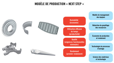 Seco Consulting Services analyse en permanence l’évolution continue de la production et a développé son modèle de production « NEXT STEP » pour faire face aux changements continus de l’industrie . Le modèle NEXT STEP est basé sur les quatre critères clés de l’usinage, à savoir la rentabilité, l’efficacité dans le temps, la qualité et le rendement. Next Step permet aux industriels d’établir et de respecter des normes d’usinage qu’ils appliqueront eux-mêmes à travers l’analyse de la production de déchets, de la technologie des procédés d’usinage, de l’outillage et de la science de la matière à usiner, de l’économie et du rendement de la production, ainsi que du rôle crucial des personnes et du leadership dans le cadre de leurs opérations.