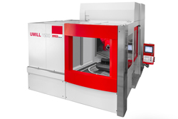 Offrant un espace de travail de 1500 x 1500 x 1100 mm et une tête de fraisage nouvellement développée par MECOF, la Umill a des performances marquantes : avec une puissance en fraisage de 45kW (S1), un couple de 300 Nm et 12000 t/mn, des résultats convaincants peuvent être obtenus grâce à la stabilité et la rigidité de la conception, alliées à une dynamique et une précision élevée, un bâti en fonte, des vis à billes et des glissières à rouleaux, optimisés par éléments finis.