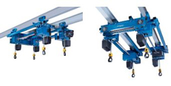 La technique du palan LDC-D à double sortie de chaîne ainsi que quelques propriétés spécifiques forment la base du vaste éventail d’applications. Parmi ces propriétés, figure par exemple l’association, au niveau de la conception, de deux palans à double sortie de chaîne, mais – et c’est là une particularité technique – avec un seul entraînement. Ce qui signifie qu’un seul moteur de palan à chaîne assure la transmission de force aux trois autres sorties de chaîne du palan LDC-Q à quatre sorties de chaîne Demag par le biais d’arbres de liaison correspondants. Ce faisant, des sorties de crochet synchronisées mécaniquement garantissent une manutention régulière et précise de la charge. De cette façon, il est possible de prélever également sans problèmes des charges possédant un rapport pondéral asymétrique – et ce, jusqu’à une répartition du poids de la charge équivalant à 70:30.