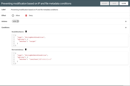 De même, l’accès aux métadonnées des fichiers et l’accès aux API (pour les systèmes, applications et services externes) sont contrôlés par les mêmes politiques générales de sécurité. Et avec les droits d’accès " refusés par défaut ", les administrateurs peuvent être sûrs que les politiques sont appliquées.