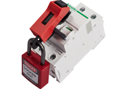 La nouvelle solution de condamnation/consignation de disjoncteur miniature universelle est facile à appliquer sur un large éventail de disjoncteurs de différents fabricants. Le petit dispositif est appliqué sur le commutateur d’un disjoncteur et fixé à l’aide d’une vis attachée facile à manipuler. Le serrage de la vis laisse apparaître un orifice pour l’anse d’un cadenas de condamnation/consignation. La fermeture du cadenas verrouille le commutateur du disjoncteur pour renforcer la sécurité durant la maintenance.