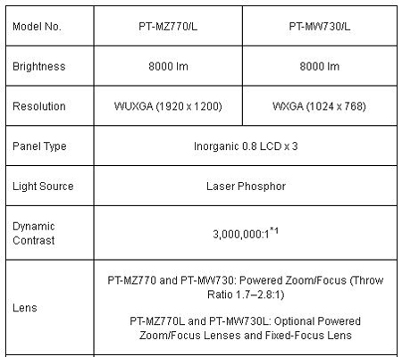 Les projecteurs laser avec objectifs interchangeables de la gamme PT-MZ770 disposent d’une luminosité de 8000 lumens aux résolutions WUXGA (PT-MZ770/L) et WXGA (PT-MW730/L). Equipés d’une unité optique étanche et résistante à la poussière et d’un filtre Eco réutilisable, les deux modèles de la gamme PT-MZ770 permettent l’utilisation du projecteur jusqu’à 20 000 heures sans maintenance. Les frais d’exploitation sont ainsi considérablement réduits.