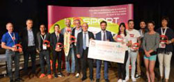 Marie Dorin-Habert, championne olympique en relais biathlon aux derniers JO de Pyeong Chang, a remis les Trophées aux 8 lauréats du Concours Inosport, en présence de Jean-Paul Bret, Président du Pays Voironnais et de Julien Polat, Maire de Voiron et 1er Vice-Président chargé de l’économie du Pays Voironnais.