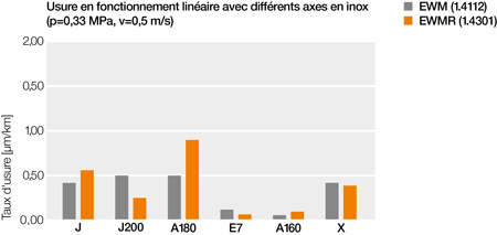 igus a testé le nouveau film lisse dans son propre laboratoire d’une superficie de 2.750 mètres carrés. Les tests ont porté sur des films en iglidur J200, iglidur J, iglidur A180, iglidur E7 et iglidur X associés à différents arbres en inox. Le matériau standard éprouvé iglidur J200 convient tout particulièrement aux arbres en aluminium, l’iglidur J confirme sa polyvalence avec tous les matériaux d’arbre. Aux clients utilisant des systèmes linéaires drylin avec des arbres en acier, igus propose l’endurant iglidur E7 tandis que ceux souhaitant avoir une grande résistance aux températures et aux produits chimiques pourront faire appel aux films lisses en iglidur X. Le test d’usure a bien montré que le nouveau film lisse en iglidur A160 présente la meilleure résistance à l’usure sur différents arbres en inox. Il est donc le partenaire idéal des guidages en inox tels qu’ils sont utilisés dans le secteur alimentaire.