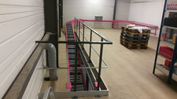 Au magasin drive E. Leclerc de Bourg-lès-Valence, pour faire face à la croissance d’activité, et par manque de place disponible, il a fallu construire une mezzanine au cœur du dépôt existant. La nécessité de réacheminer les marchandises de l’étage vers le rez-de-chaussée a conduit la direction du magasin à faire appel à la société BRUEL Manutention, basée à Andrézieux-Bouthéon (42), pour solutionner cette problématique.
