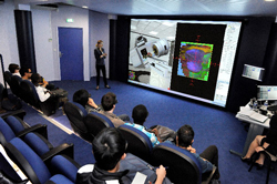 Pour une formation pratique ou métier, les stagiaires sont immergés dans le modèle numérique 4D, sous le contrôle de leur instructeur : manipulation en mode collaboratif dans le nouvel espace du hall, mise en place de dispositifs tangibles dans le noyau, tels que des dispositifs expérimentaux, ou charge de combustible.