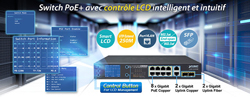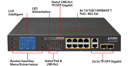 Le PLANET GSD-1222VHP est une solution Power over Ethernet Plug-and-Watch idéale pour une installation rapide, une surveillance en temps réel du statut PoE et un dépannage immédiat grâce à son écran LCD unique qui améliore l’efficacité et la qualité de travail, sans PC ni logiciel.