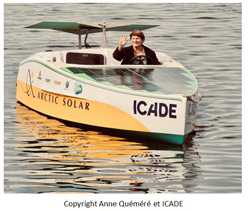 C’est à bord du solar boat « Icade », bateau propulsé uniquement à l’énergie solaire, qu’elle tentera de franchir cet été le Passage du Nord-Ouest reliant l’Océan Atlantique à l’Océan Pacifique : une première dans le domaine de la navigation polaire et un défi de taille pour la navigatrice.