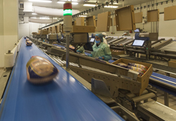 Chaque unité, préalablement pesée, est ensuite emballée en fonction de son poids puis placée dans un caisson de transport en vue de son acheminement. Un opérateur en ligne est responsable de 3 ou 4 stations. Par rapport à l’ancien traitement manuel, qui permettait de traiter environ 2 000 canards et 1 600 oies/heure, la capacité est passée à 3 600 canards et 1600 oies/heure.