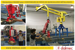 Dalmec présente un nouveau manipulateur répondant parfaitement aux exigences et contraintes de manipulations de charges répétitives exigées dans les domaines de la métallurgie et de la quincaillerie, pour la manutention de conteneurs et dont les dimensions et les poids sont très variés.