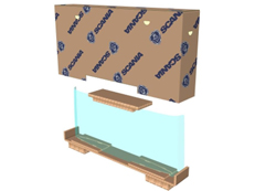 Scania avait besoin d’emballages pour les pare-brises de camions jusque-là transportées en utilisant quatre matériaux différents, dont des palettes en bois et du polystyrène expansé (PSE).