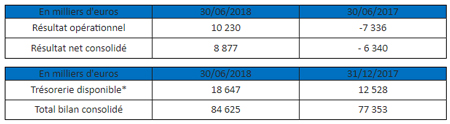 Les chiffres clés des comptes consolidés semestriels 2018 sont présentés ci-dessous :