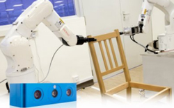 Le matériel du robot est conçu de façon à « ressentir » la manière dont les humains assemblent les objets : les « yeux » sont remplacés par une caméra 3D et les « bras » par des bras industriels robotisés capables de bouger selon six axes. Chaque bras est muni de pinces parallèles pour pouvoir saisir des objets. Des capteurs de force sont installés au niveau des poignets. Ils déterminent la force de saisie des « doigts » et la force de contact des objets requise. Le robot démarre le processus de montage en prenant des clichés 3D des éléments posés au sol de manière à créer une carte des positions estimées des différents composants.