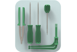 Le PARA Ixef® GS-1022 est utilisé pour les poignées du poinçondes tournevis pour broches, de la pince de verrouillage et du pied à coulisse du kit d’Intelligent Implant Systems. L’excellente résistance aux chocs du polymère a également éliminé la nécessité d’une plaque d’impact métallique, présente sur les premières conceptions du poinçon. D’où un coût d’instruments réduit ainsi qu’une fabrication et un assemblage simplifiés, favorisant ainsi l’avantage économique des instruments à usage unique.