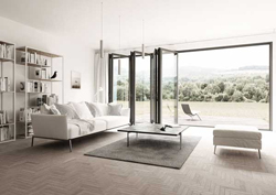La nouvelle baie pliante coulissante de Bieber est dotée d’excellentes performances acoustiques - le double vitrage standard de type 6-20-4FE améliore l’acoustique de près de 4 décibels par rapport à un vitrage standard - et thermiques avec un Uw pouvant atteindre 0,8 W/m2K. Elle optimise également la performance énergétique, la grande surface vitrée augmentant l’apport solaire et le rayonnement naturel.