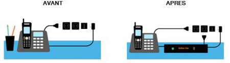 Ce boîtier est à relier au téléphone et à la prise murale pour bénéficier de la téléphonie sur IP.