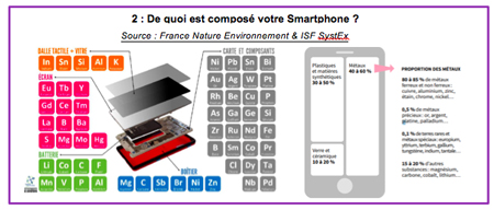 Le Smartphone a une empreinte écologique très élevée. D’après France Nature Environnement, « C’est une véritable mine de matières premières : on dénombre près de 70 matériaux dans un Smartphone (voir schéma 2), et il faut mobiliser 70kg de matières premières pour en produire, utiliser, et recycler un seul ». Des solutions permettant de réduire les impacts environnementaux de son Smartphone existent-elles ?