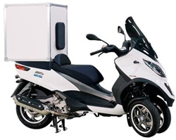 Pour permettre aux employés des mairies et des collectivités qui ont besoin de transporter du matériel caisse à outils, pièces détachées, etc. d’exercer au mieux leurs missions sans perdre de temps dans les embouteillages et dans la recherche d’une place de stationnement, SCODIAM convertit des scooters Piaggio MP3 LT 300/350/500 ABS/ASR Euro4 en véhicules utilitaires rapides.