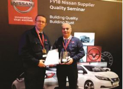 Le prix a été remis lors du Séminaire Nissan Europe de la Qualité Fournisseur qui s’est tenu à l’Université de Cranfield le 31 octobre 2018. Il fait partie des six prix décernés par Nissan à son panel de fournisseurs européens. John Rafferty, Chef de la Section Moyeux III, et Ian Jackson, Directeur de l’assurance Qualité, ont reçu le prix au nom de l’usine de Peterlee.