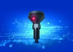 Le poussoir à ressort avec capteur d’état indique si le doigt d’appui est enfoncé ou sorti. Un capteur dans le doigt d’appui traite le signal via un câble de raccordement tandis que le poussoir à ressort est équipé d’une LED qui indique son état.